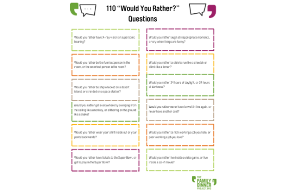 We're upgrading our most popular dinner game with 110 new "Would You Rather?" questions!